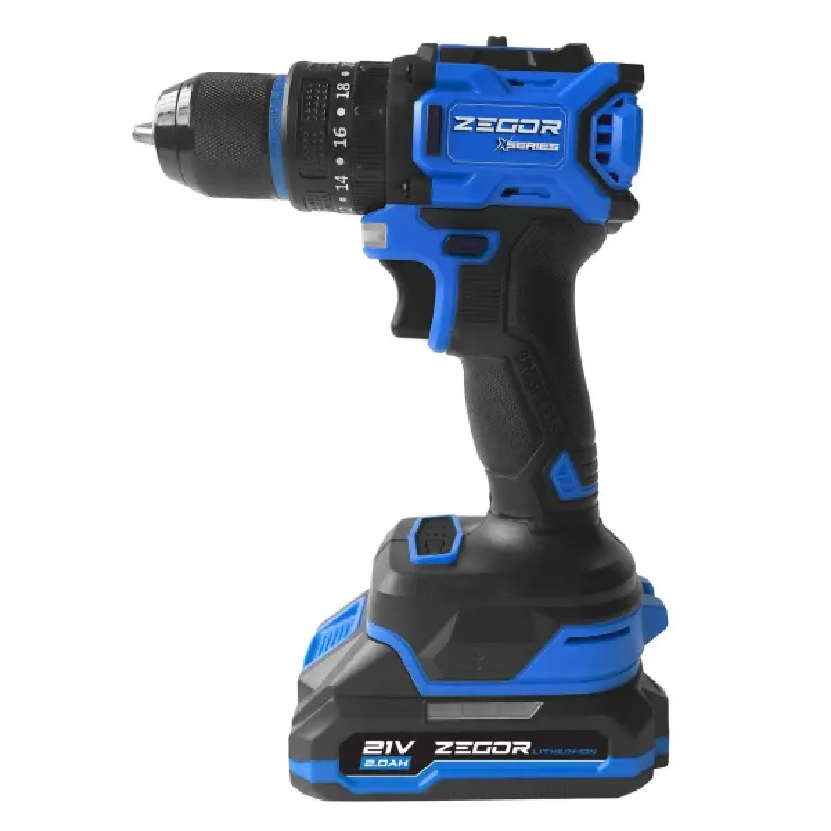 Шуруповерт Zegor-CDAX-21BL оснащений сучасним безщітковим двигуном, що забезпечує високу потужність, надійність та економне споживання енергії. Напруга 21 В і літій-іонний акумулятор 2 А·год гарантують тривалу автономну роботу.