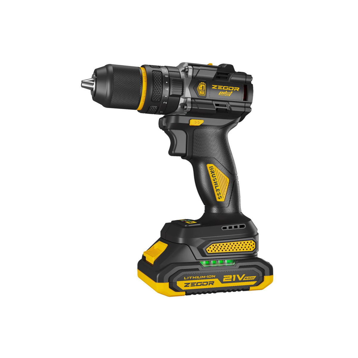 Шуруповерт Zegor-CDPP-21BLH оснащений сучасним безщітковим двигуном, що забезпечує високу потужність, надійність та економне споживання енергії. Напруга 21 В і літій-іонний акумулятор 2 А·год гарантують тривалу автономну роботу.