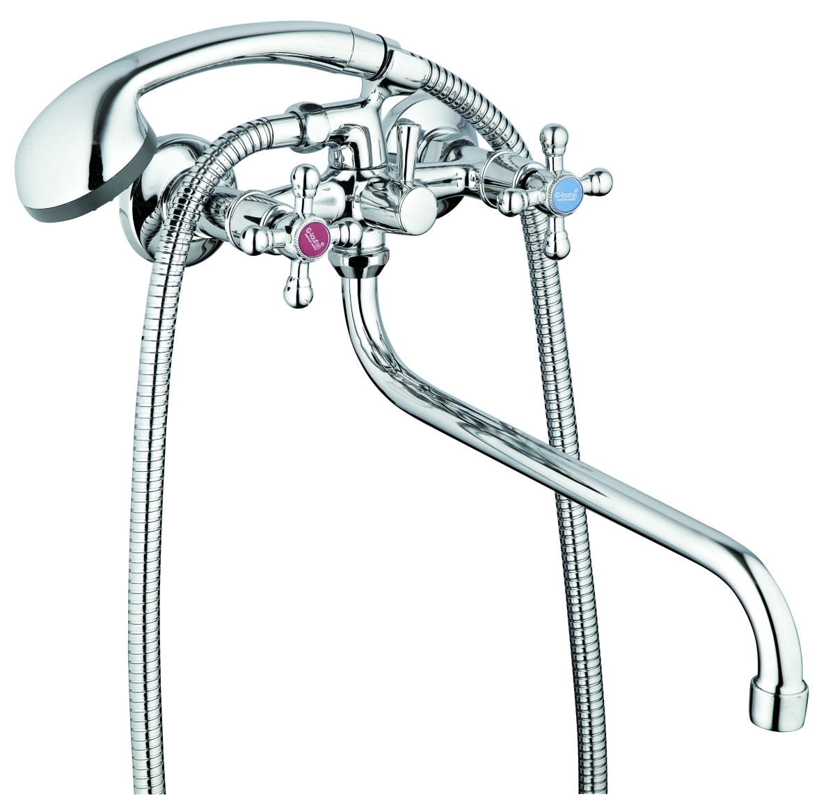 Класичний настінний змішувач для ванни з круглим виливом серії DMX, з довгим гусаком.