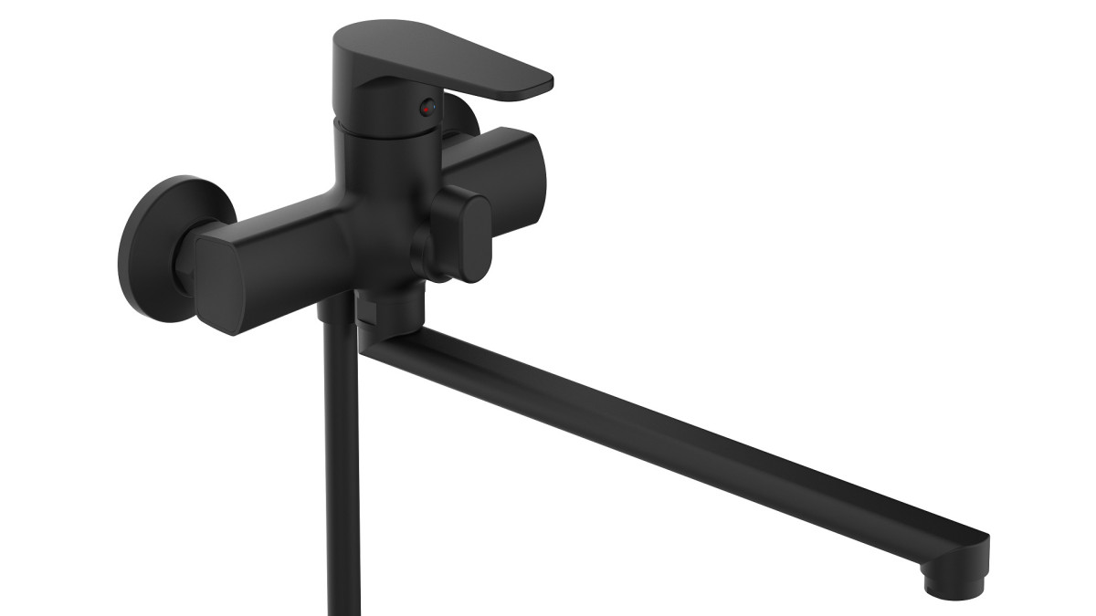 Стильний настінний змішувач для ванни з поворотним виливом серії EDN, з довгим гусаком.