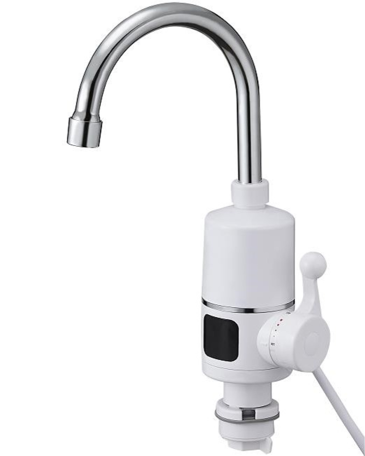 Змішувач оснащений LED-екраном з індикатором температури та ПЗВ для безпеки. Робочий тиск магістралі становить 0,04–0,5 МПа, а максимальна температура нагріву води досягає 60°, що забезпечує комфорт і безпечну експлуатацію.